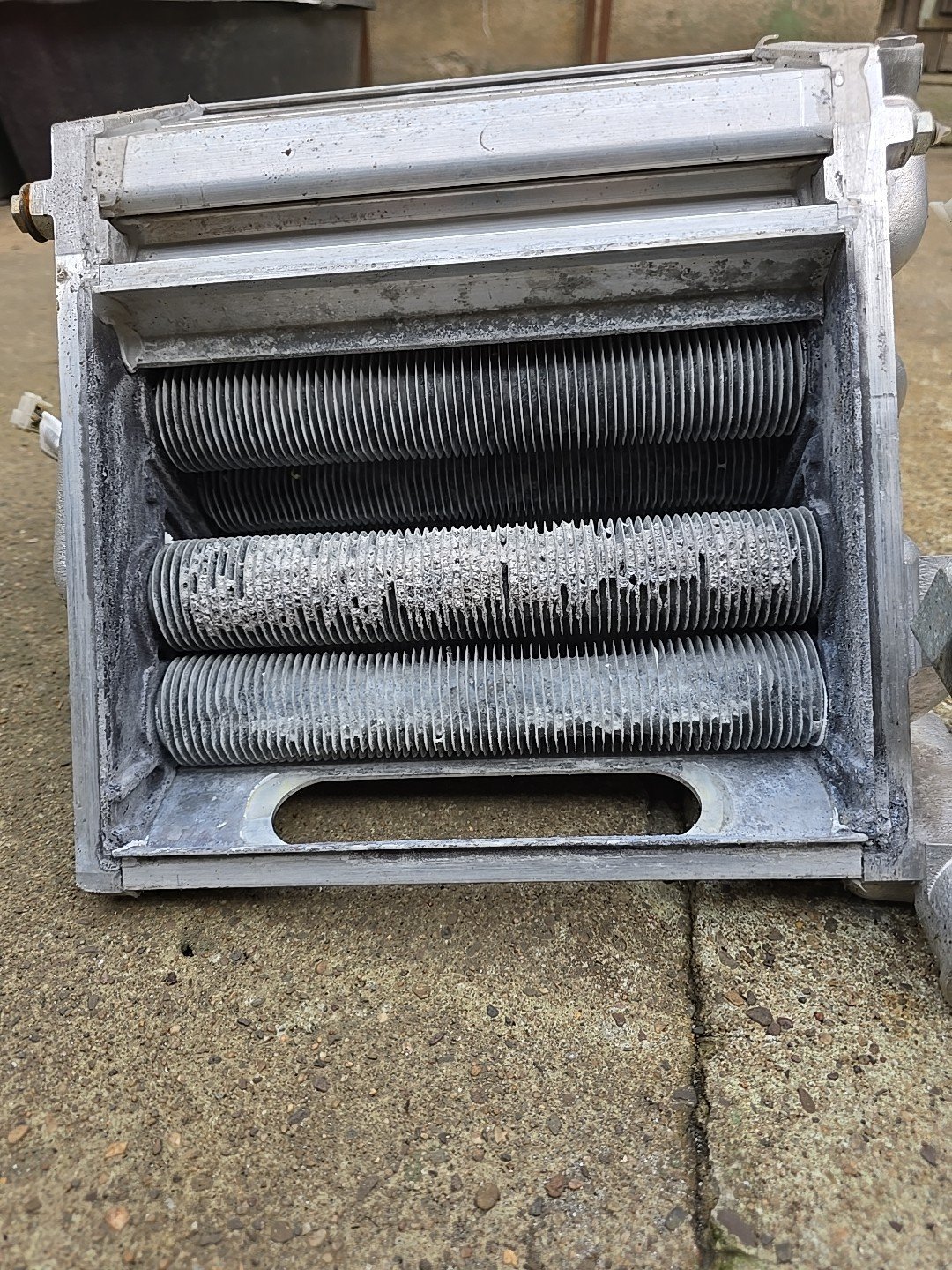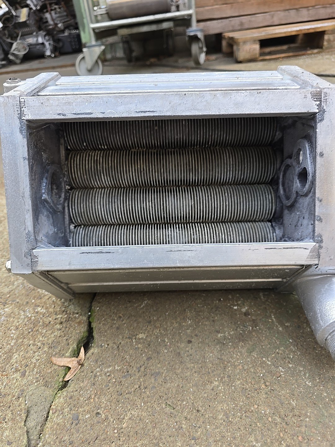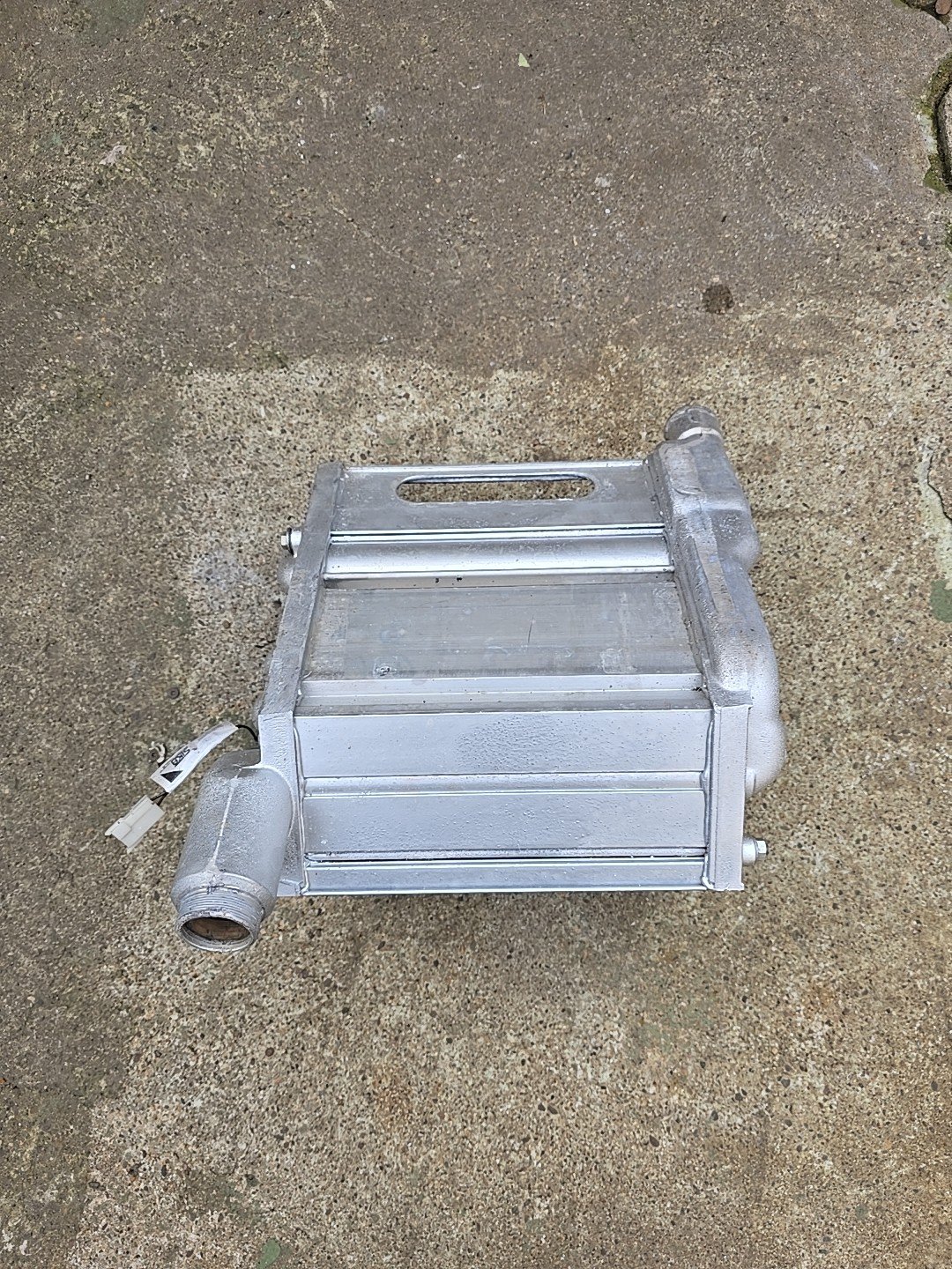 Der Wärmetauscher ist dicht und war bis zuletzt im Einsatz. Der Wärmetauscher hat nicht mehr den besten Zustand aber ok. Siehe Bilder