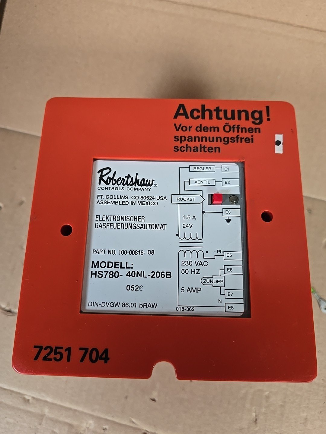 Verkauft wird hier ein generalüberholtes Viessmann Robertshaw Steuergerät / Gasfeuerungsautomat HS780-40NL-206B / 7251 704 wie auf den Bildern zusehen.